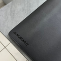 Ich habe die Kunstledermatte ohne eigene Prägung bestellt. Das Material fühlt sich gut an, die Oberseite ist glatt und eben, die Kanten sind sauber vernäht. Ein versehentlicher "Fleckentest" mit Tee ließ sich problemlos abwischen. Die Prägung vom Nesk-Logo ist tief und gut zu erkennen, die Kanten sind klar. Der einzige, kleine Nachteil ist, dass die Korkrückseite auch recht glatt ist und dadurch auf meiner Tischplatte aus Glas leicht weg rutscht.